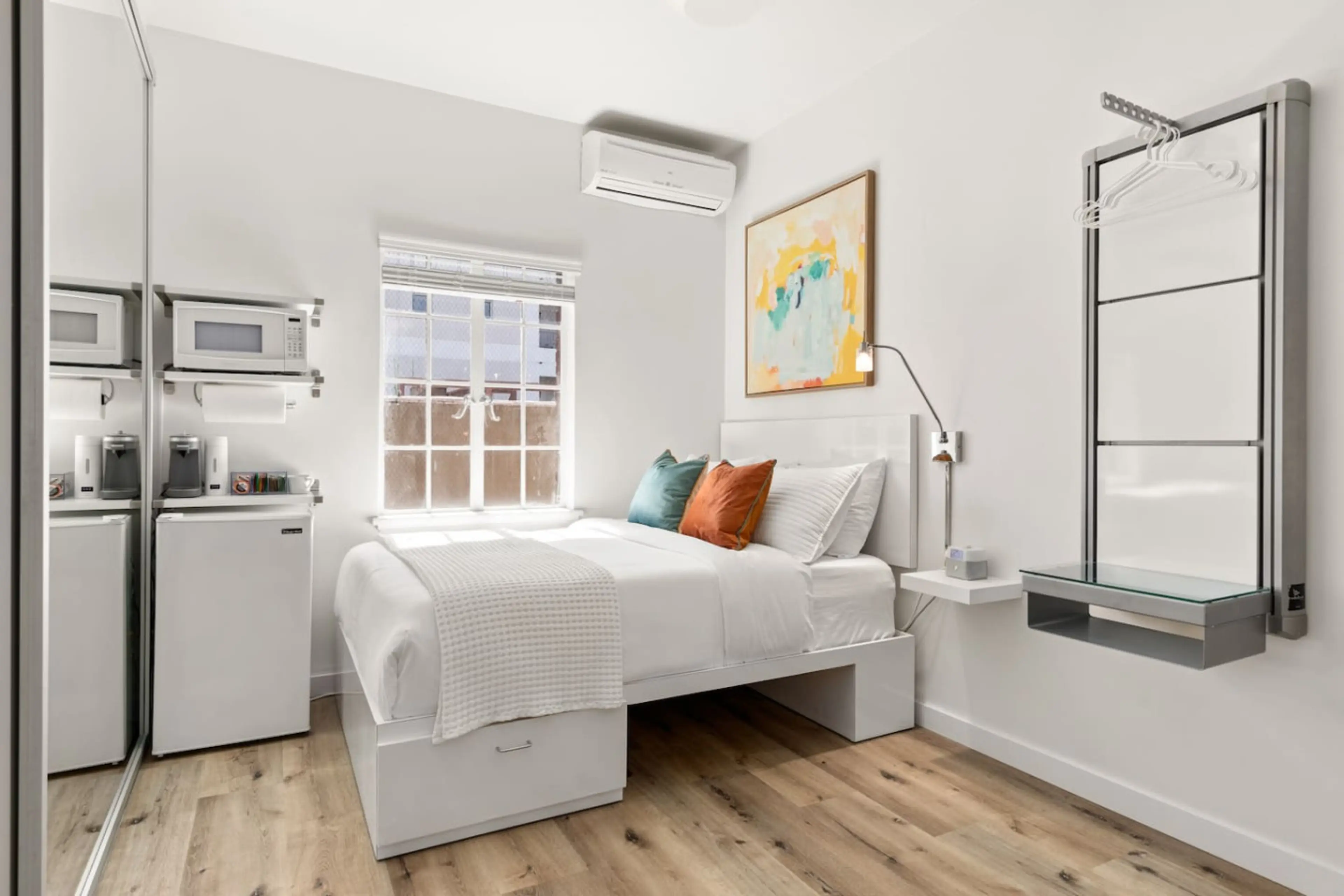 110-130 ft² · 10-12 m² Tiny in size, big on convenience! The Varden is a boutique micro-studio hotel. All rooms are intentionally compact and designed for efficiency. Layouts vary slightly, but the vibe and essentials are consistent: full-size bed, private bathroom, kitchenette, TV, free Wi-Fi a...